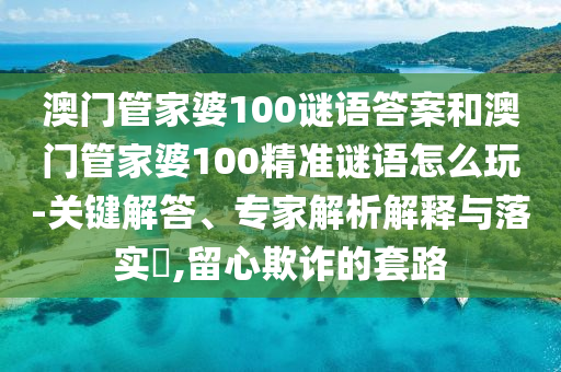 澳門管家婆100謎語答案和澳門管家婆100精準(zhǔn)謎語怎么玩-關(guān)鍵解答、專家解析解釋與落實(shí)?,留心欺詐的套路