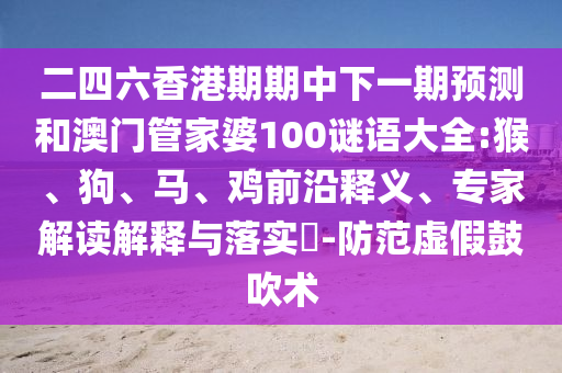 二四六香港期期中下一期預(yù)測”和“澳門管家婆100謎語大全”中涉及猴、狗、馬、雞的防范虛假鼓吹術(shù)的前沿釋義、專家解讀與落實(shí)