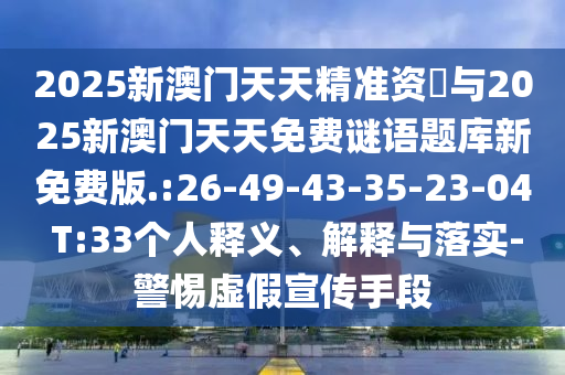 2025新澳門天天精準(zhǔn)資枓與2025新澳門天天免費(fèi)謎語(yǔ)題庫(kù)新免費(fèi)版.:26-49-43-35-23-04 T:33個(gè)人釋義、解釋與落實(shí)-警惕虛假宣傳手段