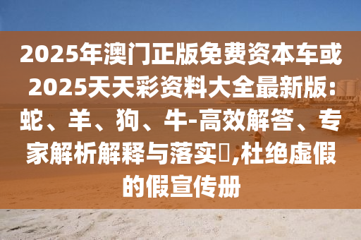 2025年澳門正版免費資本車或2025天天彩資料大全最新版:蛇、羊、狗、牛-高效解答、專家解析解釋與落實?,杜絕虛假的假宣傳冊