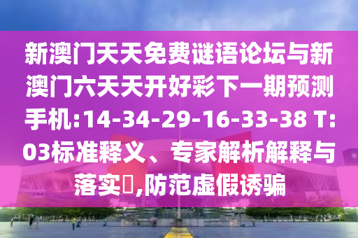 新澳門天天免費(fèi)謎語(yǔ)論壇與新澳門六天天開(kāi)好彩下一期預(yù)測(cè)手機(jī):14-34-29-16-33-38 T:03標(biāo)準(zhǔn)釋義、專家解析解釋與落實(shí)?,防范虛假誘騙