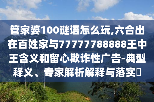 管家婆100謎語怎么玩,六合出在百姓家與77777788888王中王含義和留心欺詐性廣告-典型釋義、專家解析解釋與落實(shí)?