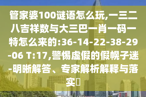 管家婆100謎語怎么玩,一三二八吉祥數(shù)與大三巴一肖一碼一特怎么來的:36-14-22-38-29-06 T:17,警惕虛假的假幌子迷-明晰解答、專家解析解釋與落實(shí)?