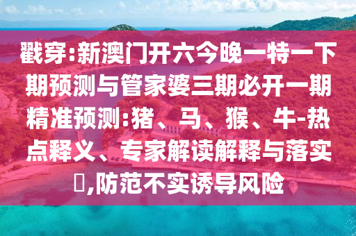 戳穿:新澳門開六今晚一特一下期預(yù)測與管家婆三期必開一期精準預(yù)測:豬、馬、猴、牛-熱點釋義、專家解讀解釋與落實?,防范不實誘導(dǎo)風(fēng)險