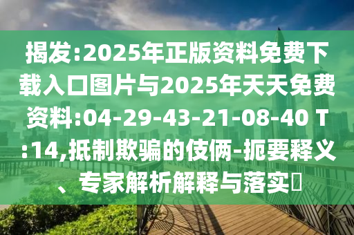 2025年正版資料免費(fèi)下載入口圖片與2025年天天免費(fèi)資料:04-29-43-21-08-40 T:14”的扼要釋義、專家解析解釋與落實(shí),以及抵制欺騙的伎倆