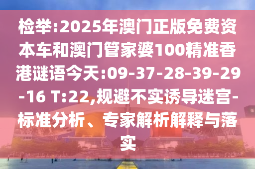 檢舉:2025年澳門正版免費資本車和澳門管家婆100精準香港謎語今天:09-37-28-39-29-16 T:22,規(guī)避不實誘導(dǎo)迷宮-標準分析、專家解析解釋與落實