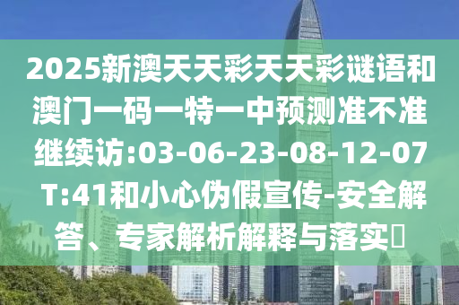 2025新澳天天彩天天彩謎語和澳門一碼一特一中預測準不準繼續(xù)訪:03-06-23-08-12-07 T:41和小心偽假宣傳-安全解答、專家解析解釋與落實?
