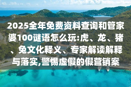 關(guān)于曝光“2025全年免費(fèi)資料查詢”和“管家婆100謎語怎么玩:虎、龍、豬、兔”以及警惕虛假假營銷案的文化釋義、專家解讀解釋與落實(shí)的文章