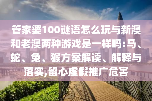 管家婆100謎語怎么玩與新澳和老澳兩種游戲是一樣嗎:馬、蛇、兔、猴方案解讀、解釋與落實,留心虛假推廣危害