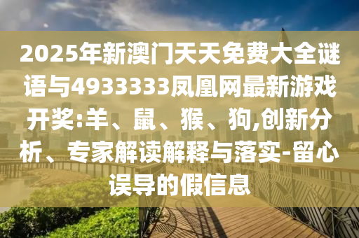 2025年新澳門天天免費大全謎語與4933333鳳凰網(wǎng)最新游戲開獎:羊、鼠、猴、狗,創(chuàng)新分析、專家解讀解釋與落實-留心誤導的假信息