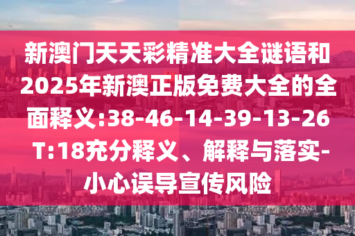 新澳門天天彩精準(zhǔn)大全謎語和2025年新澳正版免費大全的全面釋義:38-46-14-39-13-26 T:18充分釋義、解釋與落實-小心誤導(dǎo)宣傳風(fēng)險