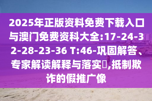 2025年正版資料免費(fèi)下載入口與澳門免費(fèi)資科大全:17-24-32-28-23-36 T:46-鞏固解答、專家解讀解釋與落實(shí)?,抵制欺詐的假推廣像