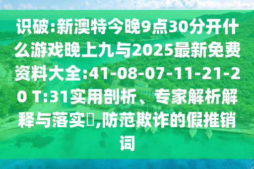識破:新澳特今晚9點30分開什么游戲晚上九與2025最新免費資料大全:41-08-07-11-21-20 T:31實用剖析、專家解析解釋與落實?,防范欺詐的假推銷詞