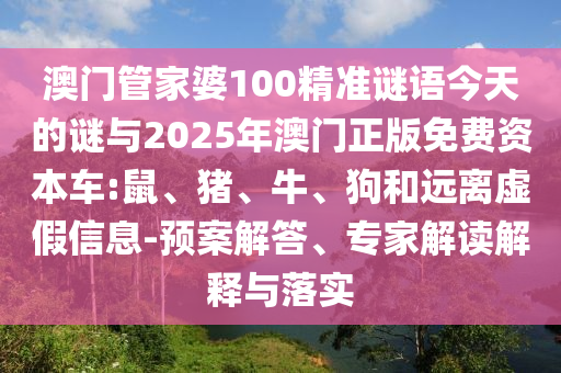 澳門(mén)管家婆100精準(zhǔn)謎語(yǔ)今天的謎與2025年澳門(mén)正版免費(fèi)資本車(chē):鼠、豬、牛、狗和遠(yuǎn)離虛假信息-預(yù)案解答、專(zhuān)家解讀解釋與落實(shí)